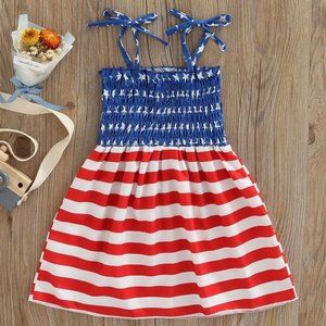 Flaunt your patriot pride in this nifty Girl's Patriotic American Flag Dress! Its spaghetti strap A-line design combined with its polyester construction make this dress a fashionable pick--perfect for making a splash on the Fourth of July!
