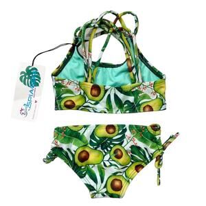 NEW Girls Swimsuit Two Piece Avocado Green Size 2 Spiaggia Beachwear