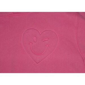 NEW Girls Sz 14 Bright Pink Hoodie Lightweight Embossed Smiley Face Sweatshirt