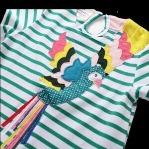 Girls Summer A-Line Dress – This beautiful dress is perfect for your little girl. Light and airy it will be great for the hot summer days. Cotton mixed prints dress with applique parrot. So cute and comfortable!