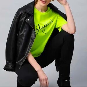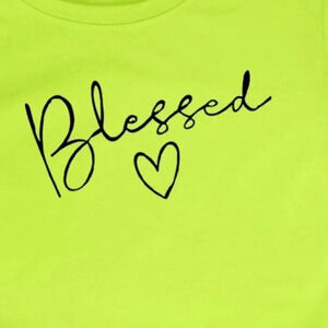 NEW! Girly Neon Green Graphic Heart & Blessed Baggy Short Sleeve T-Shirt