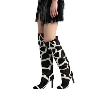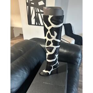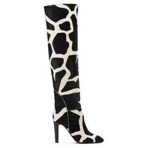 NEW Giuseppe Zanotti Hattie Boots Calfhair Giraffe Print Over the Knee Boot Size 37.5 Black White Mod MSRP $2,250