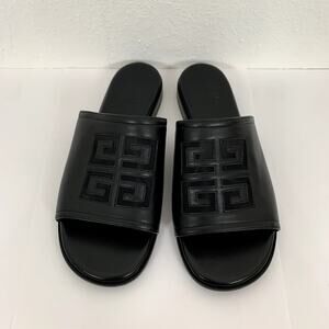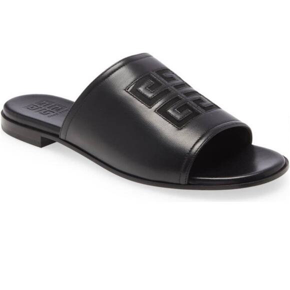 NEW Givenchy 4G Cut-Out Leather Flat Sandals in Black Size US 6 AUTHENTIC