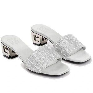 NEW | Givenchy G Cube Silver Embellished Satin Sandal Mule Italian Size 35