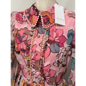 NEW Gizia Beaded Chiffon Mock Neck Midi Pink Floral M5F059 Size 36 Small Turkey