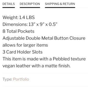 This item is made with a Pebbled texture vegan leather with a matte finish.