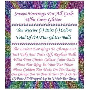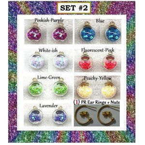NEW Glitter Star Glass Ball Interchangeable Charm Earrings 7 Pairs in Set