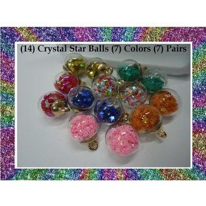 (7) PRS Different Color Glitter Stars "GLASS" Ball Charms (2) Each Style