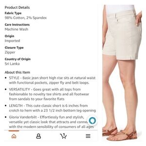 NEW Gloria Vanderbilt Amanda Stonewood Tan Classic Rise Stretchy Size 16 Shorts