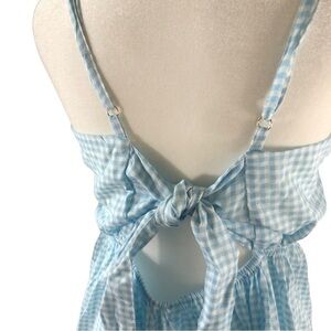 NEW Goa Gingham Sundress Women M Blue White Adjustable Straps Tie Back Cottage