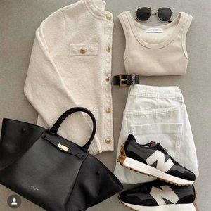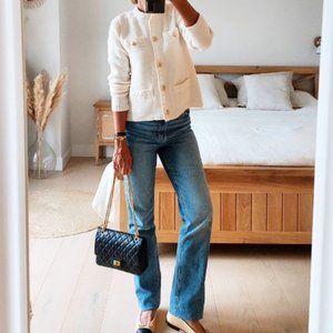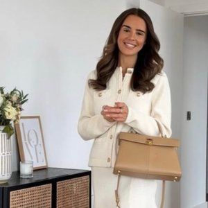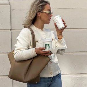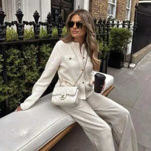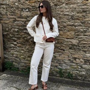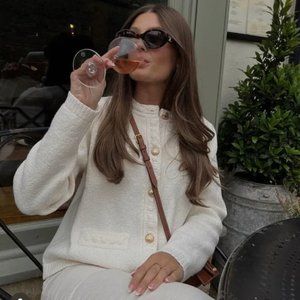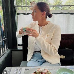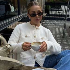 NEW Gold Button Tweed Textured Knit Sweater Cardigan Jacket - Cream Ivory