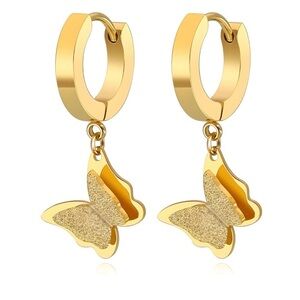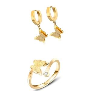 NEW- Gold Earrings & Ring in set/ 18K gold plated Butterflies Dangle Earrings