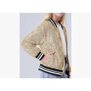 NEW Gold Girls Sequin Bomber Sparkle Zipper Pockets Jacket 8 Yrs