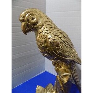 NEW Gold Parrot Statue Figurine Tropical Home Decor Birds Macaw