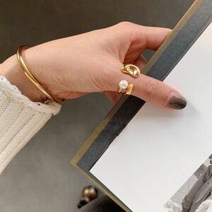 NEW Gold & Pearl Adjustable Statement Ring