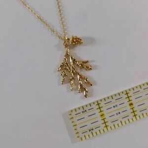 NEW! Gold Pinecone Pine Bough Pendant Necklace Nature Outdoors Trees Evergreen