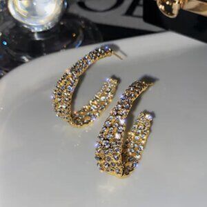 NEW Gold Plated Crystal Circle C Hoop Earrings