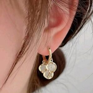 NWOT Gold Plated white beaded wrapped dangling charms huggie hoop Earrings, feature a stunning cluster design in gold and white. Perfect for adding a touch of sophistication to any outfit.
