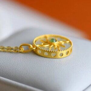 NEW Gold Tone Pendant Metal White Jade Look Sunburst Necklace Chain Green Center