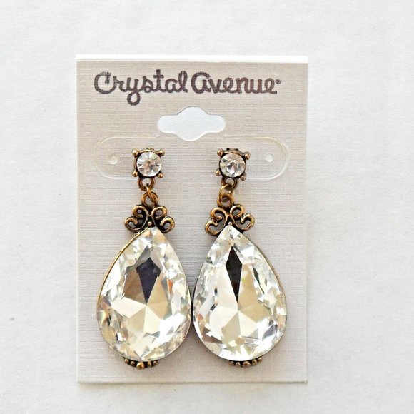 NEW Gold Tone Rhinestone Teardrop Earrings