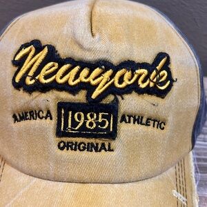 NEW Gold Woman’s Embroidered Distressed New York Adjustable Trucker Hat