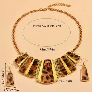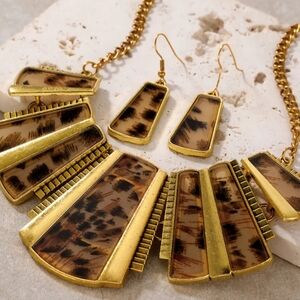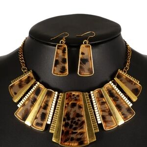 NEW Gold and Brown Leopard Print Cheetah Collar Necklace and Earring Set-(0259)