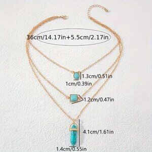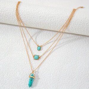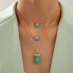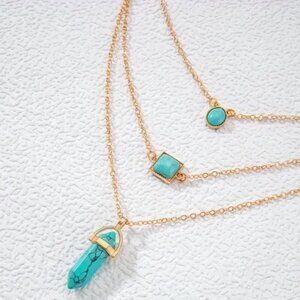 NEW Gold and Turquoise Blue Stone Triple Layered Necklace