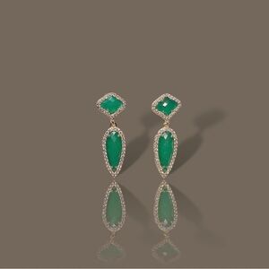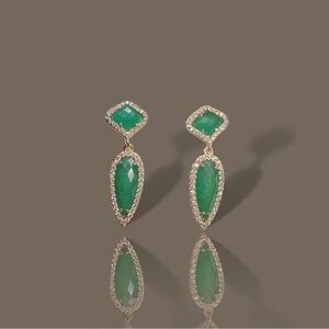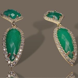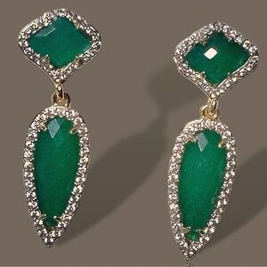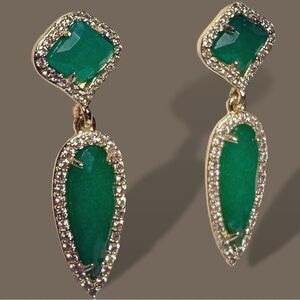 NEW Goldtone Emerald Green Imitation Gemstone & CZ Spike Dangle Drop Earrings