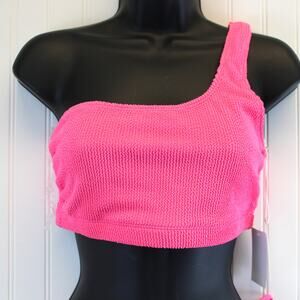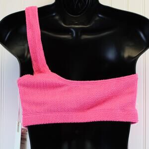 NEW Good American Always Fits Bikini Set One Shoulder Top Tiny Ties Bottom Pink