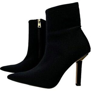 NEW Good American Ankle Shine Neoprene Stiletto Heeled Booties in Black …