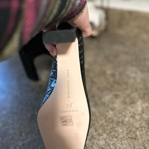 NEW Good American Black Crocodile Patent Leather Mid Calf Booties Size 7.5