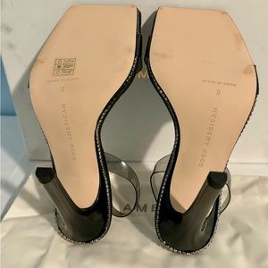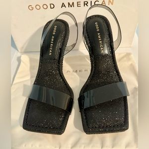 NEW Good American Black Glitter Strappy High Heels Women 5 Square Open Toe Party
