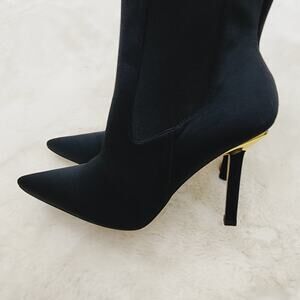 Good American, Kickstand Bootie, Neoprene, Ankle Boot, High Heel, Black, Classic Black, Bootie, Stiletto, Pointed Toe, Pull-on, Stretch Fabric, Sleek, Modern, Edgy, Designer, Kardashian, Khloe Kardashian, Sexy, Night out, Date night, Heeled boots, Ankle boots, Fall fashion, Winter boots, Minimalist, Neutral, Cloud Sold, Revolve, Nordstrom
