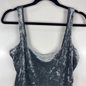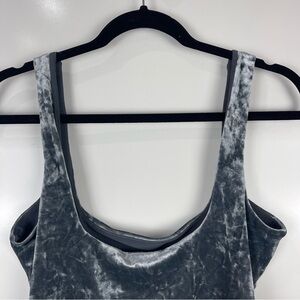 NEW Good American Crushed Velvet Sleeveless Thong Bodysuit Carbon Grey Size LG