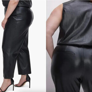 NEW Good American Faux Leather Wide Leg Crop Trousers In Black, Size 14 / 32