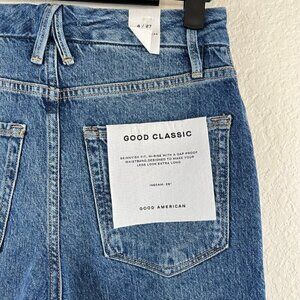 NEW Good American Good Classic Raw Hem High Waisted Jeans in Blue940