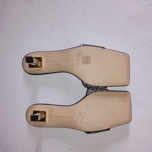 Good American shoes, Kickstand mules, rhinestone heels, black slide heels, square toe sandals, glam heels, party shoes, statement footwear