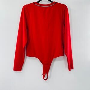 NEW Good American Low Down Bodysuit Red Black Net Accent Sz 5 US XXL Minimalist