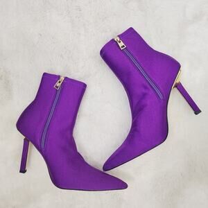 NEW Good American Purple Shine Neoprene Heel Point Toe Ankle Boot