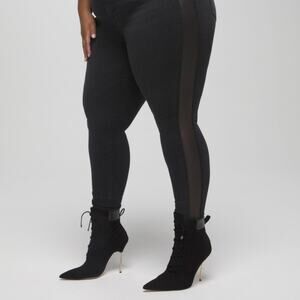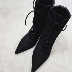 NEW Good American Scandal Black Suede Lace Up Point Toe Heeled Bootie