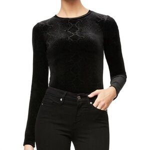 NEW! Good American Snake Print Burnout Velour Bodysuit Long Sleeves Black SZ L
