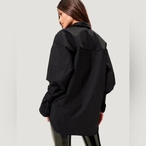 NEW! Good American Tabbed Poplin Shirt Long Sleeve Button Front Black SZ L/XL