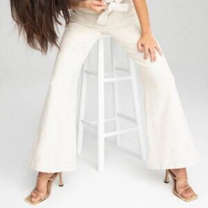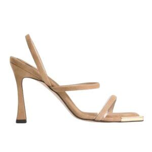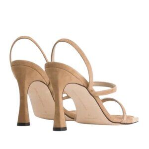 NEW Good American The Standout Suede Square Toe Heeled Sandal in Beige / Gold