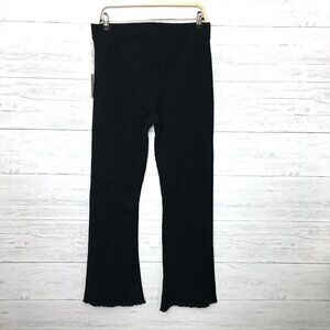 Description: New Good American black rib knit stretch pants, lettuce edge, baby flare