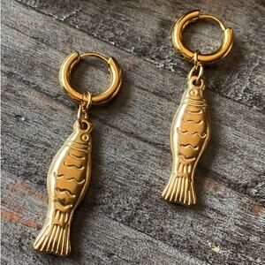 NEW Good Luck Fish Gold Plated Hoop Earrings
