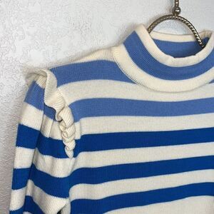 NEW Goop × Perfect Moment Striped Ruffle Sleeve Rainbow Wool Sweater XS