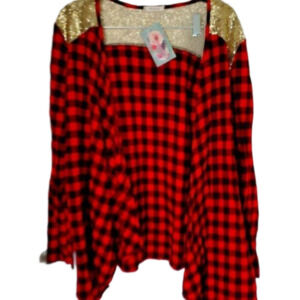 New with tags Red and Black Buffalo Plaid Carnigan with gold sequins size S. This Carnigan is super cute. From a smoke free home. Take advantage of our Fall Sale. Any item with a leaf 🍁 is 4 items for $25 no matter what the everyday low price is. You can bundle all 4 items and send us an offer of $25 or we can make the offer and send it to you to accept. Bundle to combine shipping. (Shipping cannot exceed 5 pounds per box) Thank you for shopping with our family! We appreciate you!