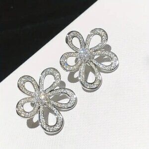 NEW Gorgeous Silver Sparkling Crystal Flower Earrings