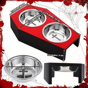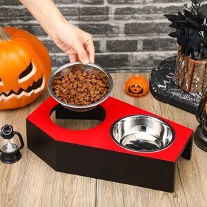 {NEW} Gothic Cat Food Bowls 5° Raised Elevated Wooden Coffin Cat Bowl