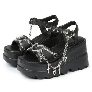 NEW - Gothic Women's Platform Sandals | Black PU Cover Open Toe with